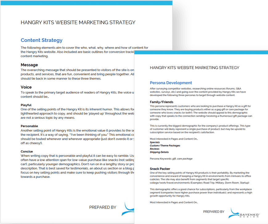 With a focus on these 3 persona types Sayenko Design developed a website strategy that included a conversion strategy, keyword research, competitor audit, messaging and content strategy.