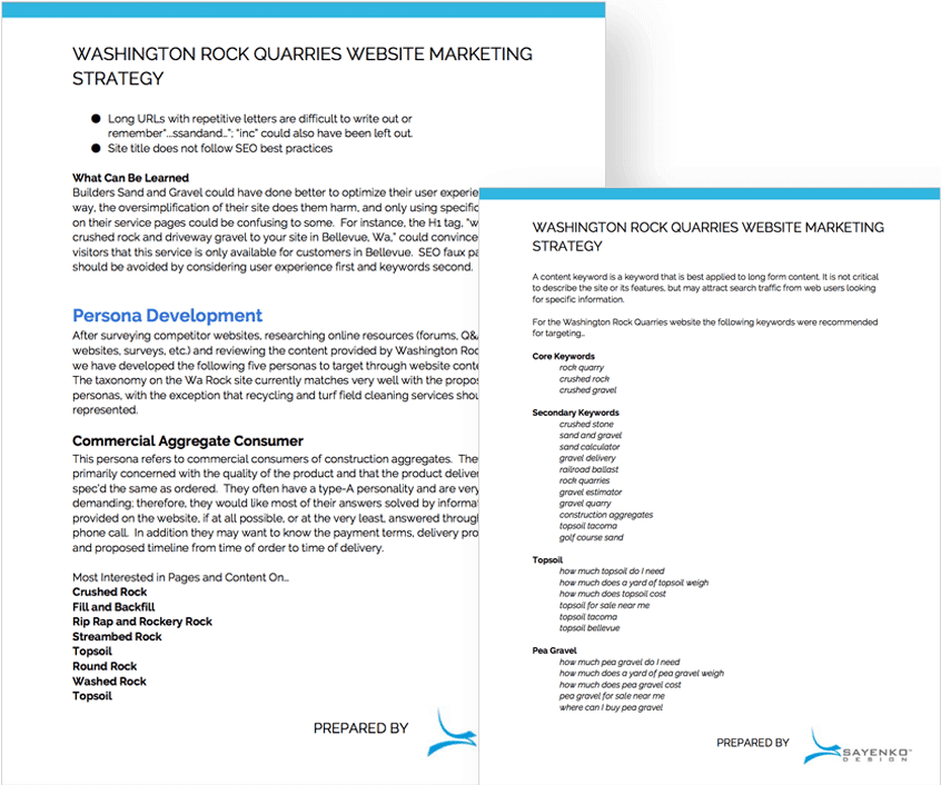 Solution: Local search engine optimization to increase traffic from search results related to aggregate products in the South Puget Sound region.