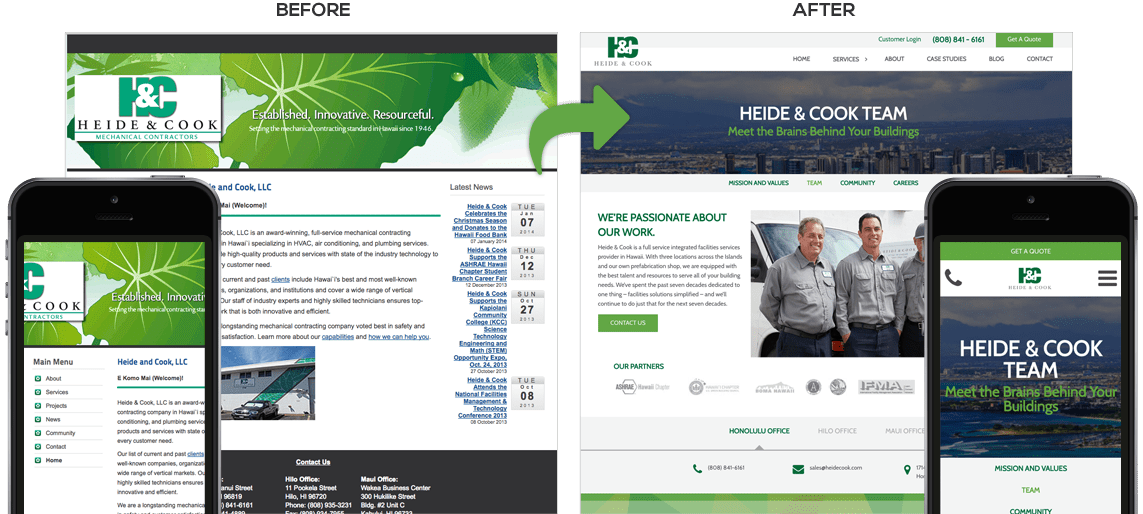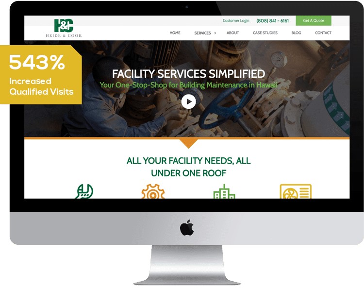 In short, we helped the world see Heide & Cook for the fully integrated facility services company it is. The results speak for themselves. Traffic jumped immediately after the re-launch of the website, as did leads and sales.