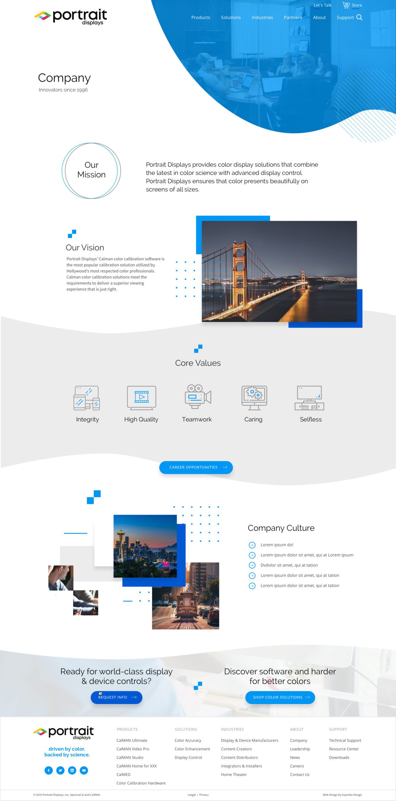 B2B Color Display Solutions – Portrait DisplaysMike Sayenko2023-09-18T13:41:51+00:00 Portrait Displays provides color display solutions that combine the latest in color science with advanced display control.Services provided: Website Strategy Business Branding Professional Website Design WordPress Development WordPress Maintenance START YOUR PROJECT Related Vacation Rental Properties – SkyRun Vacation Rentals Gallery Vacation Rental Properties – SkyRun Vacation Rentals U.S. Immigration Law Firm – ColomboHurd Gallery U.S. Immigration Law Firm – ColomboHurd B2C Korean Women’s Spa – Olympus Spa Gallery B2C Korean Women’s Spa – Olympus Spa B2B & B2G Global Consulting & Risk Management Training – Viristar Gallery B2B & B2G Global Consulting & Risk Management Training – Viristar B2B & B2G Venue Seating Solutions – Hussey Seating Gallery B2B & B2G Venue Seating Solutions – Hussey Seating B2C Higher Education Training – Pitman Training Gallery B2C Higher Education Training – Pitman Training B2B & B2G Healthcare – Wider Circle B2B Automotive Lidar Web Design – MicroVision Gallery B2B Automotive Lidar Web Design – MicroVision B2G Native Community Web Design – Kauffman Gallery B2G Native Community Web Design – Kauffman Custom Home Builders – JayMarc Homes Gallery Custom Home Builders – JayMarc Homes