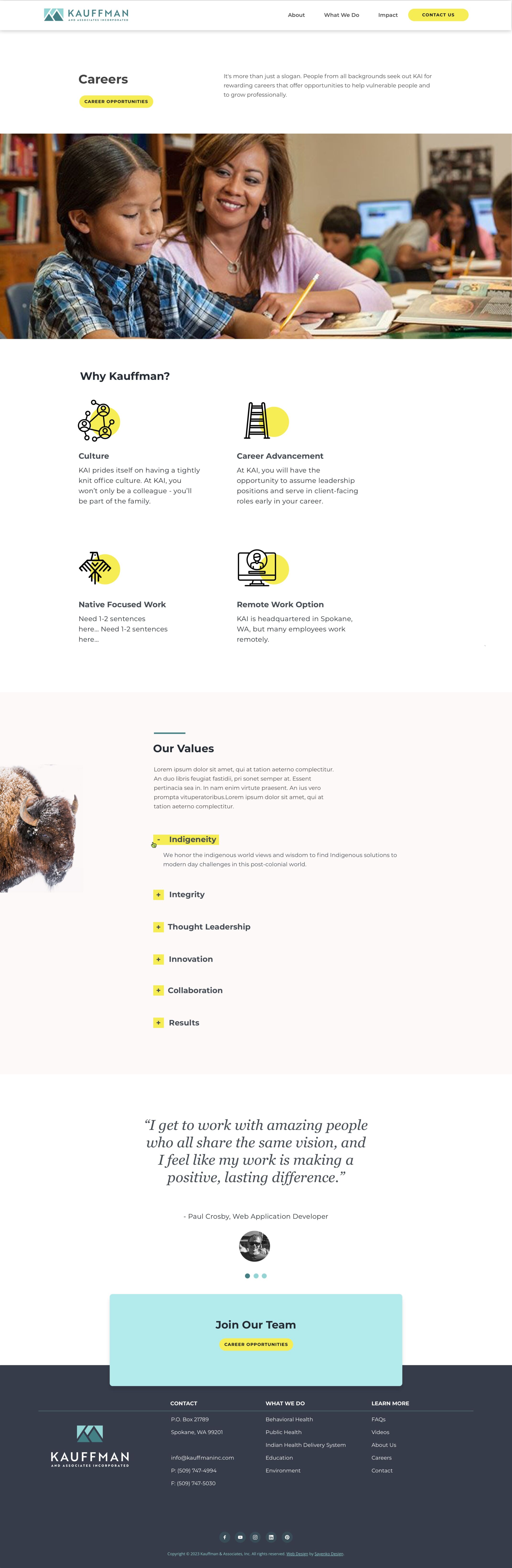 Kauffman is an American Indian consulting firm dedicated to improving the lives of vulnerable populations and effectiveness of social sector organizations.