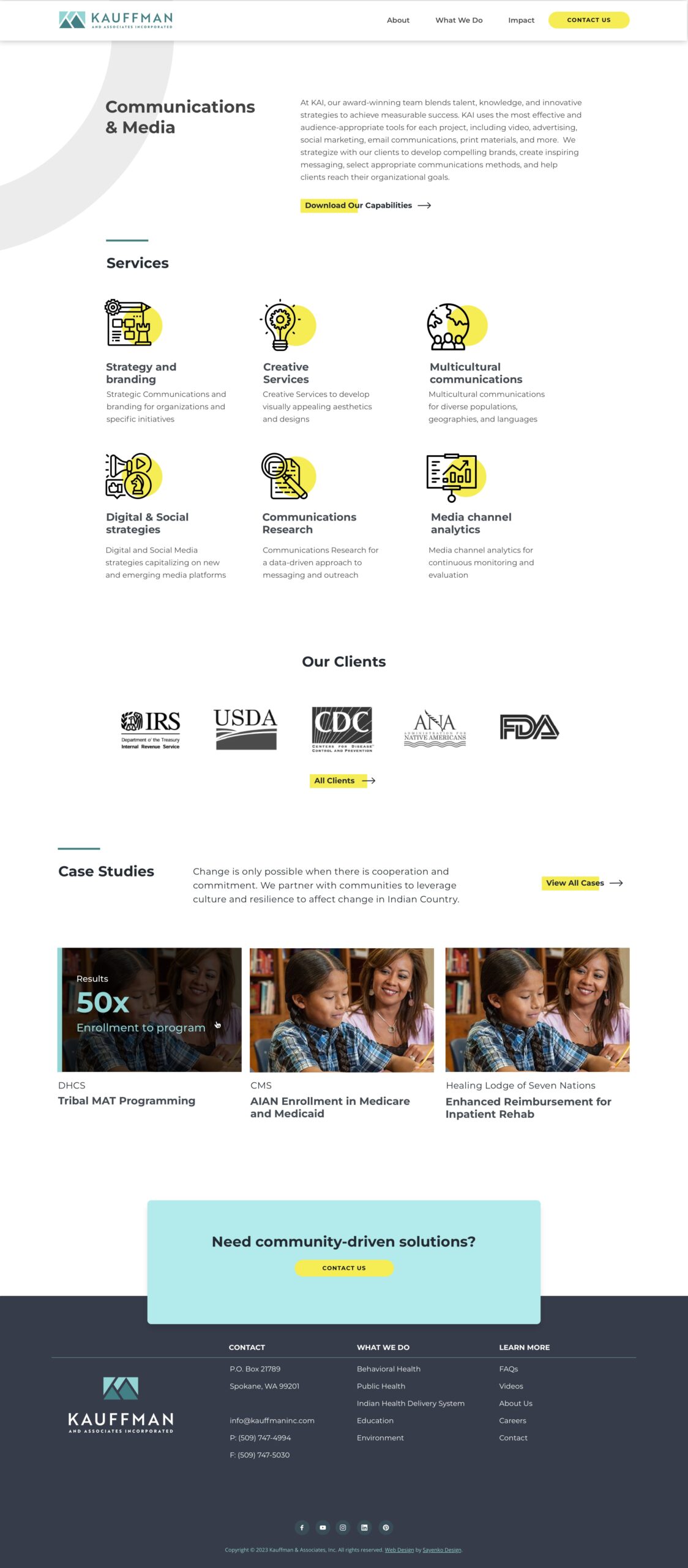 Kauffman’s expertise spans diverse specialty areas, including public health, education, and economic development. They work closely with federal, tribal, state, and regional governments; associations; foundations; and private-sector businesses.